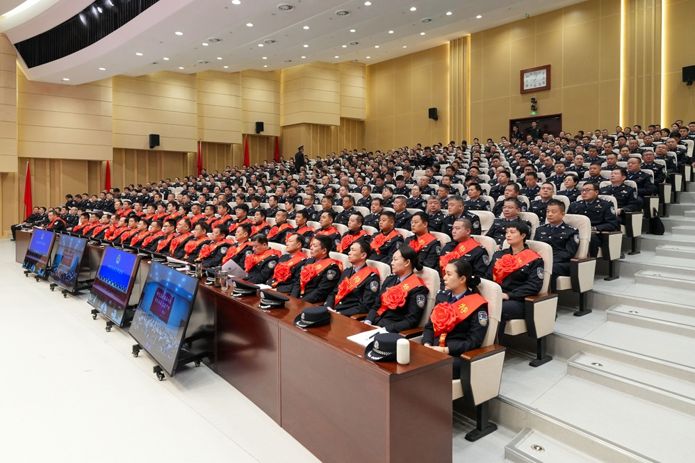 上午9时,大会在雄壮的中华人民共和国国歌中正式拉开序幕,这既是一次激励斗志、催人奋进的总结表彰大会,更是一次大干当前、决胜全年的誓师动员大会,全体参会人员精神饱满、斗志昂扬,共谋发展、共话未来。会议认真传达了中央政法工作、全国公安厅局长、省委政法工作、全省公安局长、市委政法工作等会议精神和倪岳峰、张超超、马宇骏等省市领导批示指示精神。2024年全市公安机关立功受奖集体和个人代表上台领奖,他们中有锐意改革、担当作为的好团队、好干部,有攻坚克难、勇于攀登的先锋队、带头人,有扎根一线、埋头苦干的老党员、新同志;优秀单位、先进集体、先进个人、基层单位代表和辅警代表分别作典型发言,尽展职业专业、规范自信、创新引领的现代化、国际范儿美丽警察形象。